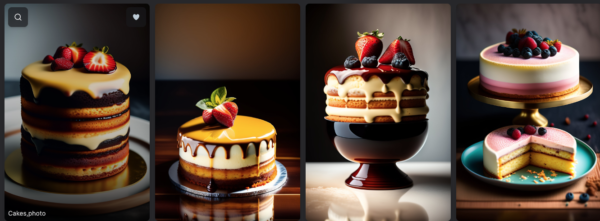 逆に最高値はpromptに忠実に生成ってことで。今回cakes,photo のみいれましたから、ケーキの写真といえばこれです!ってLexicaのAIが考えているわけですね。なんだか食べてはいけないような完成度です。