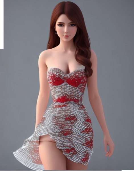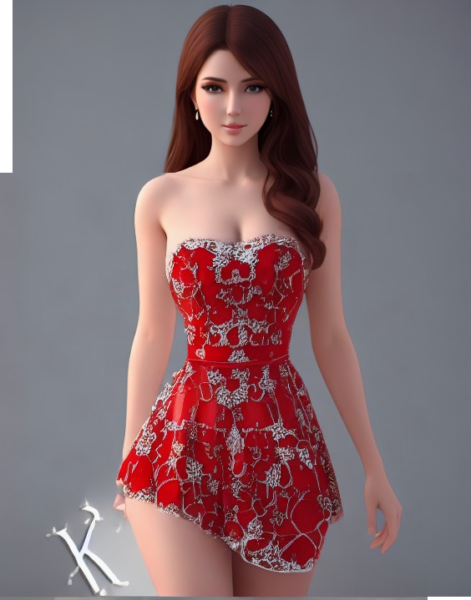 prompt=”young woman, whole body,front view,wearing red dress,8k resolution,3d render”
