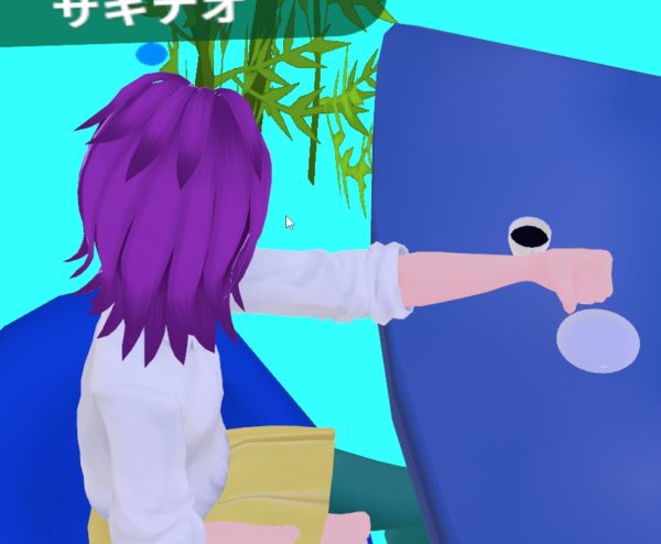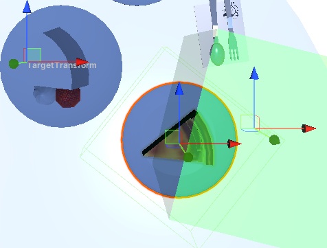 これが上のケーキ持ってる画像の設定詳細。一番右のギズモの位置がGrabbable ItemのGripに指定したところ。Zが向かう方がアバター正面つまりZの逆がアバターの前になるのかなあ?あああ!混乱するよおおお!
