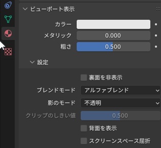 マテリアルプロパティよりビューポート表示-設定-ブレンドモードを不透明からアルファブレンドにする。