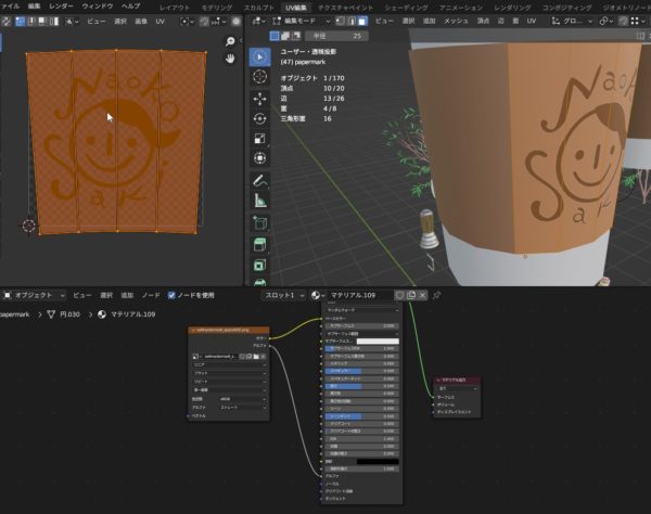 ロゴの画像の周りにいい感じな余白を入れたのち、BlenderUV編集で選択範囲ぎりぎりに入れてみました。
