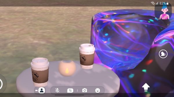 さて、ワールドのテイクアウト用コーヒーの持つところ(スリーブというのですかね)とアバターの後ろ頭皮がちらちらするんですよね。