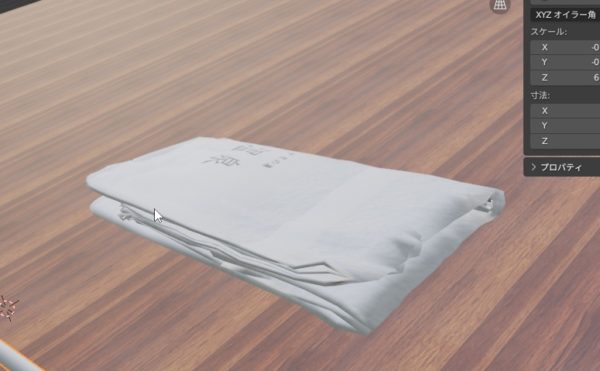 クロスでシミュレーションを行い、偶然うまくたためたタオルよりも、モデリングでたたんだタオルの方がきれい、っていうね…ほんと、ほぼ2日費やしたんですよね…それで、結局そういうことっていうね…