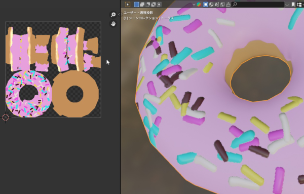 - UV編集タブでUV展開確認(多分さっきと同じのがある)