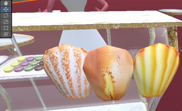 今日はマドレーヌです。いつものようにPhotoshopでAI生成し、モデルにはりつけます。マドレーヌは型に入っている方とは逆の面はパウンドケーキみたいになっているので、そこもこだわりました。
