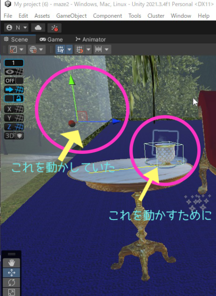 でね、あの3方向を指しているギズモありますよね。キズナじゃないですよ、Empty Parentのギズモが下についてる子から離れているため親子移動が面倒くさすぎたので調べたりなんだりしたらなんと一瞬で一致しました。