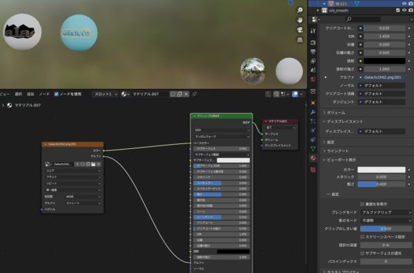 - シェーダーにて画像とプリンシプルBSDFカラーとカラー、アルファとアルファをつなぐ *A*参照