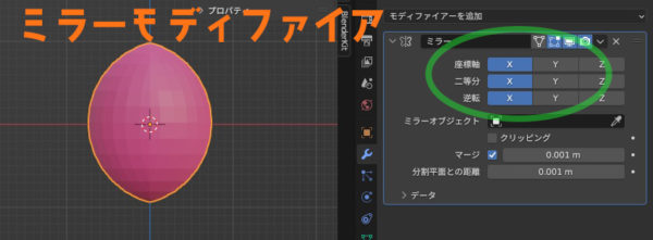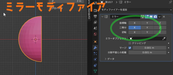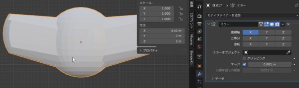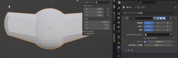 うん。あれ?球が横長になってない。あ、そっか、Z軸でなくてやはりオレンジの中点を中心にミラーするんですね。これ超大事ですね。