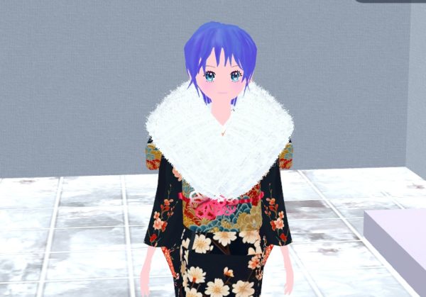 動くとはみ出てしまいますが、もうそれはファーショールは体に沿って動かないものですからね。しょうがないです。限度ありますよね…