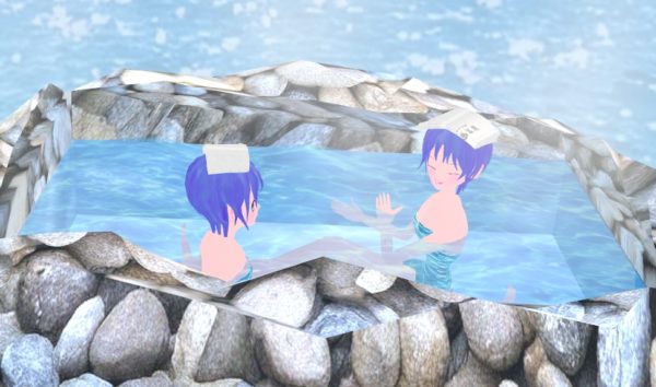 おお!じゃあ湯気もこれでやってみるといいのかも!とやってみました。あとアバター商品の水着☆そらりちゃんも別売りアクセサリーの、のせ温泉タオルとともに設置。