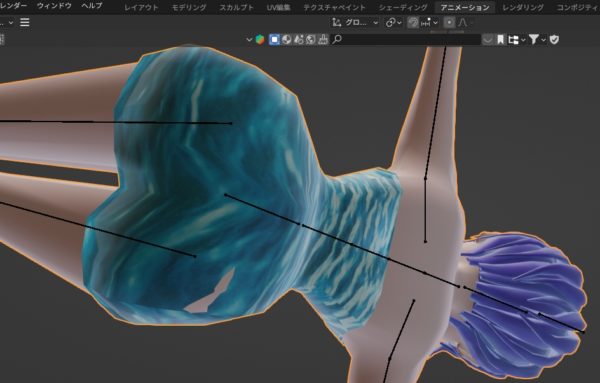 見づらいですね。おしりの上です。Blenderで見てみましょう。