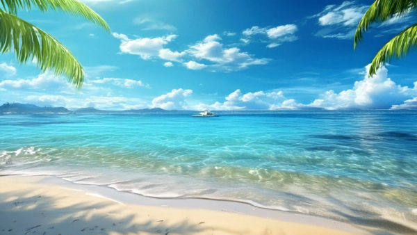 夏の海、白い砂浜、南の島、青い海、青い空、超リアルな画像
