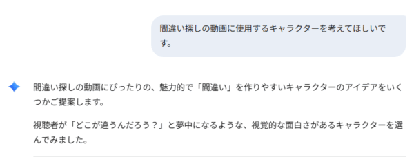 文章で狐とかカメレオンとか、ロボットとかの提案があったんですが、そのキャラクター自体で間違い探しをつくると勘違いされているようだったので、